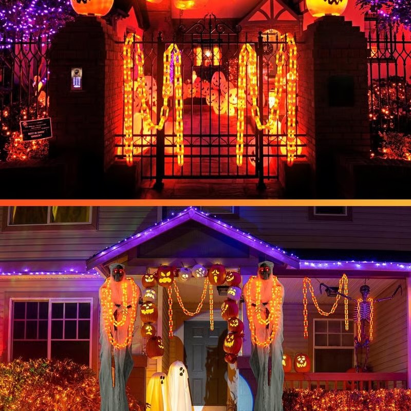 UNIQUE CHAIN LIGHT DESIGN - This unique chain light design will add a touch of spooky fun to your Halloween. The orange lamp shell and lights will make your home look like a haunted house or pumpkin patch.